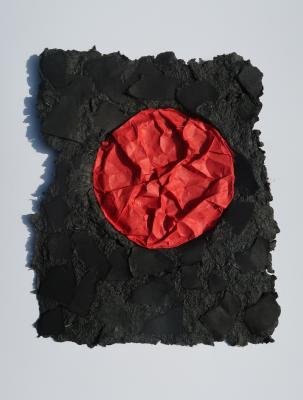 "Feuer", selbst geschöpftes Papier und Hanji Papier